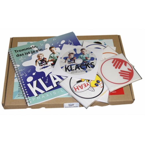 Für den Einsatz in Kindergarten und Grundschule. Grundlage des KLACKS! Systems ist das Lehrbuch, welches speziell für Pädagogen entwickelt wurde. Mit Anwendungsbeispielen, Musikspielen zu verschiedenen Themen (Bewegung, Sprachförderung oder Zahlenverständnis) Rhythmusübungen, Mitmachliedern und Mitmachgeschichten. Eine Lern-CD mit Rhythmusübungen und Mitmachliedern sowie die hilfreichen Notensymbole zum Auslegen runden das Lehrbuch ab. Inhalt: 1 Lehrbuch, 1 CD mit Rhythmen, Kinderlieder, Geschichten und 100 Notensymbole. Maße: 35,5 x 25 cm.
