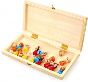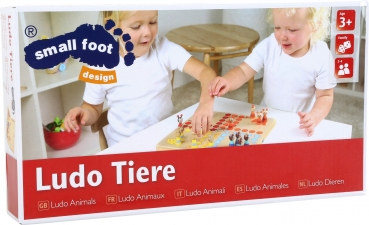 Klassisches Spiel in lustigem Design – hier bekommen die Spieler eine Beziehung zu ihren tierischen Figuren! Eine weitere Besonderheit: Der Würfel zeigt keine „Augen“ sondern Ziffern! Die Spielsteine und Würfel werden in der klappbaren Holzbox sicher verstaut.